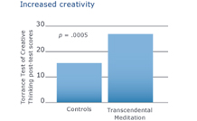 Individuals who learned Transcendental Meditation showed increased creativity in comparison to controls as measured by a higher level of pictorial originality when measured after five months of practice. They also showed increased creativity as measured by higher levels of pictorial flexibility and verbal fluency (not charted).
