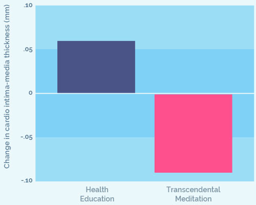 Rannsóknin sýndi að hjá þeim sem lærðu innhverfa íhugun varð minni þykknun í hálsslagæðum. Andstætt þessu varð áframhaldandi þykknun í hálsslagæðum hjá samanburðarhópi sem fékk heilsufræðslu um mataræði og líkamsrækt.