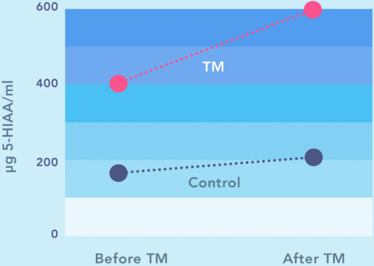 Taugalífeðlisfræðingar hafa komist að því að iðkun innhverfrar íhugunar losar um serótónín, taugaboðefnið sem hefur áhrif á tilfinningar, vellíðan og gleði.