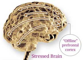 Stress, pressure, fatigue, poor diet, alcohol, and drugs damage neural connections between the brain's prefrontal cortex—or "CEO"—and the rest of the brain. When you are overtired or under intense mental or physical stress, the brain bypasses its "higher," more evolved, rational frontal executive circuits. Consequently, you respond to daily demands without thinking; you make impulsive, shortsighted decisions. When the CEO goes "offline," strong emotions, such as fear and anger, take over, adversely coloring your view of the world.